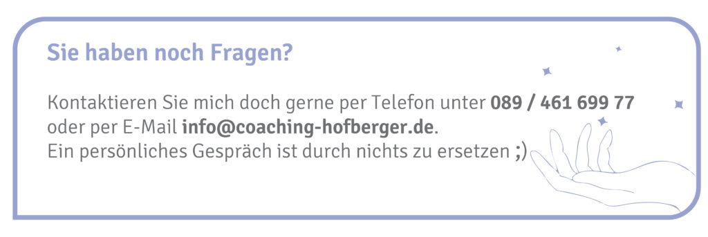 Anmeldung unter info@coaching-hofberger.de oder telefonisch oder…;)