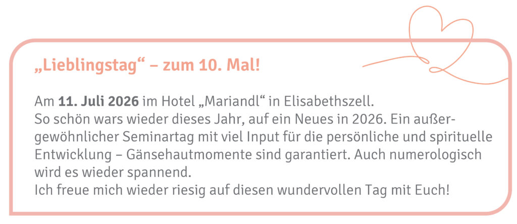 Numerologie-Vertiefungsseminar: „Numerologie und Partnerschaft“. Für alle, die bereits das 2-tägige Startseminar besucht haben und ein gutes Grundwissen über die Charakteristik der einzelnen Zahlen besitzen sowie die Bedeutungen der Quersummen des Geburtsdatums kennen. Eigentlich ein Muss für alle Beziehungen und Partnerschaften.